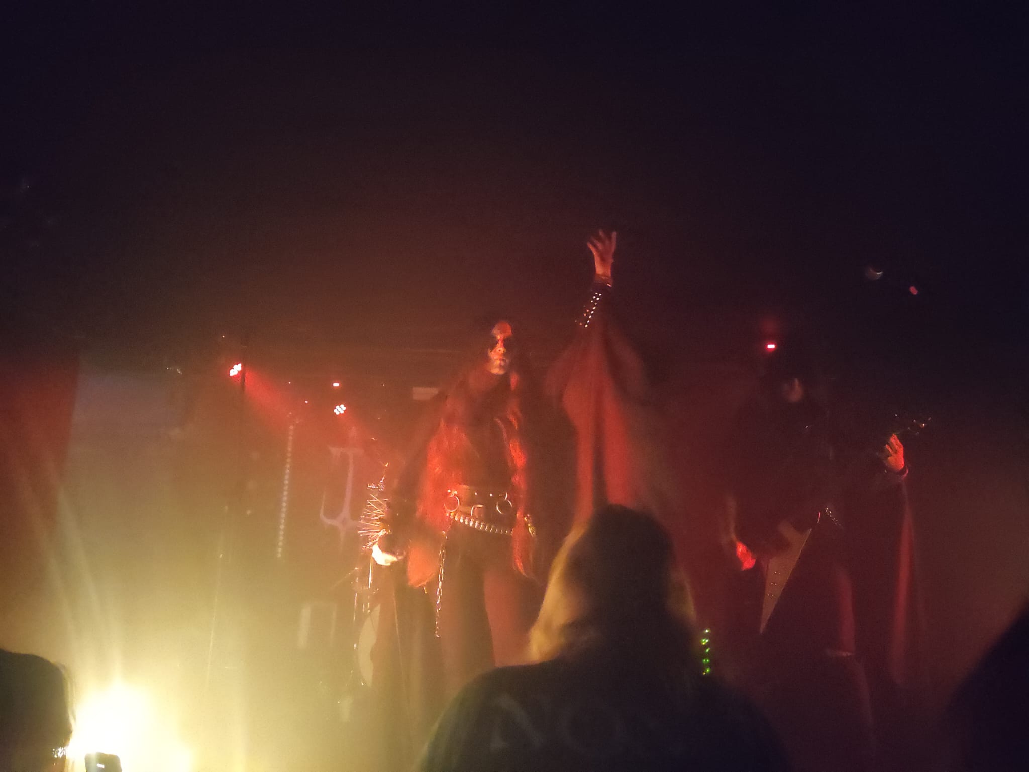 Słodki Jezu, coś z masą kajmakową w wafelku został podany, co tam się na tej jebanej scenie wydarzyło. Podkręcone lekko tempo wpłynęło dwójnasób na zawartość diabła w tej muzyce. Gdy wjechała na wstęp pieśń „O, Triumfie”, a pode mną się nogi ugięły. To jest właśnie to, to uczucie uniesienia i porwania przez muzykę. Obecnie dość trudno, by stało się to na żywo, ale tego wieczora Truciźnie udało się to z marszu. Perkusja napierdalała, niczym w młoty w czarciej kuźni. Skoll bezlitośnie zarzynał publikę riffami, a w każdym dźwięku zawarty był pierwiastek zła. No i rzecz jasna Ona, westalka Piekieł i pieśniarka zguby, JRMR, która swoim obłąkanym wokalem wlewała w serca słodką truciznę śpiewając o blasfemii totalnej. Tam pasowało wszystko. Nieświęta Trójca uwijająca się na scenie wypełniła Liverpool po brzegi, by dosłownie wzbudzić w publice wrzenie krwi, bo nawet mały moshpit się utworzył. Jak poleciało „Spotkanie Zła i Gnuśności”, czy pod koniec „Devil’s Glory Among Us”, to publiczność wyła, a od wzniesionych pięści było aż gęsto. Ja wiem, że spuszczam się tu okrutnie, ale wierzcie mi, że rzadko kiedy dane mi jest doświadczyć taką siłę oraz pasję ze sceny, jak to miało miejsce tego wieczoru. Arcysztos.